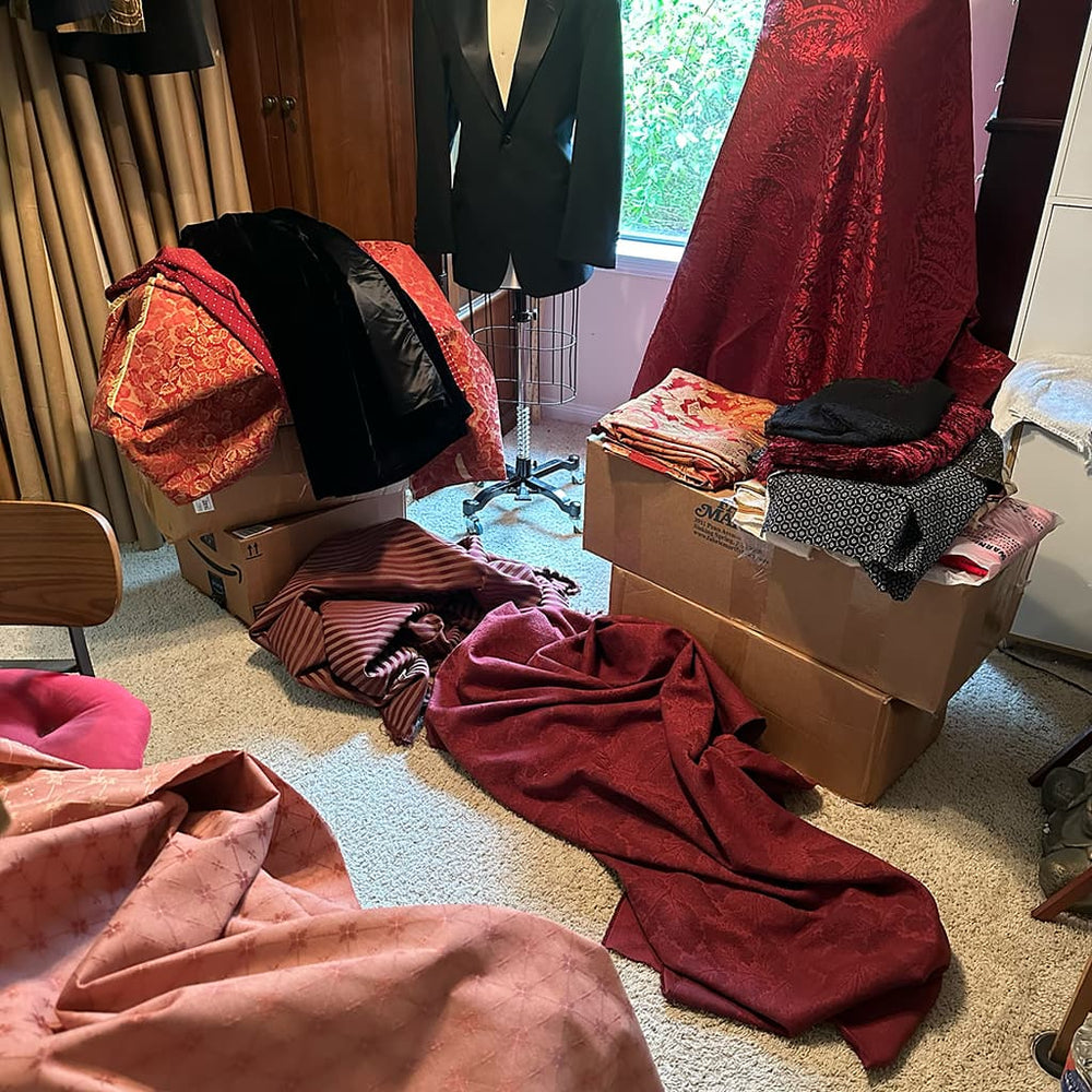 I began sourcing and accumulating again more carefully curated thrift and vintage clothing, antique textiles, and deadstock luxury fabrics. Absolutely yummy and gorgeous pieces I'm thrilled to work with!