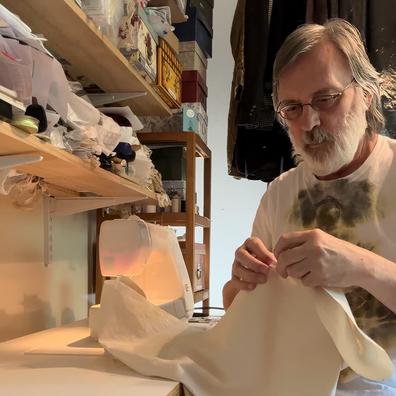 Blue Cobalt's vision for Luna e Stelle emerged from a deep commitment to sustainability and a lifetime of artistic exploration. Taught machine sewing at age three by their mother on their grandmother's machine (which is still used in the atelier today for sewing thicker fabrics), and hand sewing a few years later by their grandmother, Blue brings decades of experience in fashion, design, and creative industries to the brand.